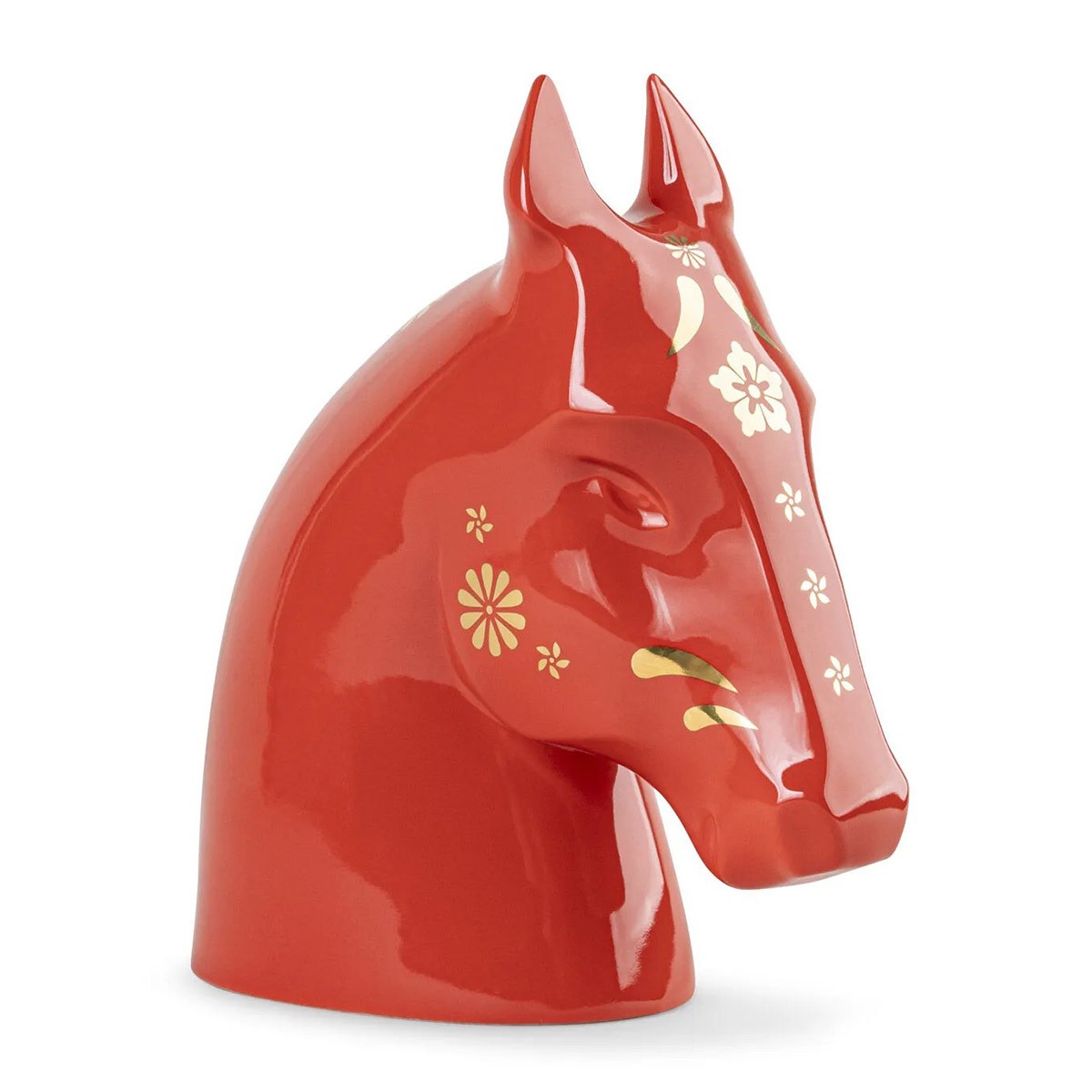A symbol of energy and freedom, the horse is one of the most admired signs of the Chinese zodiac. This glazed porcelain creation, in vibrant red with hand-applied golden accents, conveys dynamism and vitality. The decoration, inspired by traditional Eastern floral motifs, enhances its symbolic nature and connects it to its cultural background.