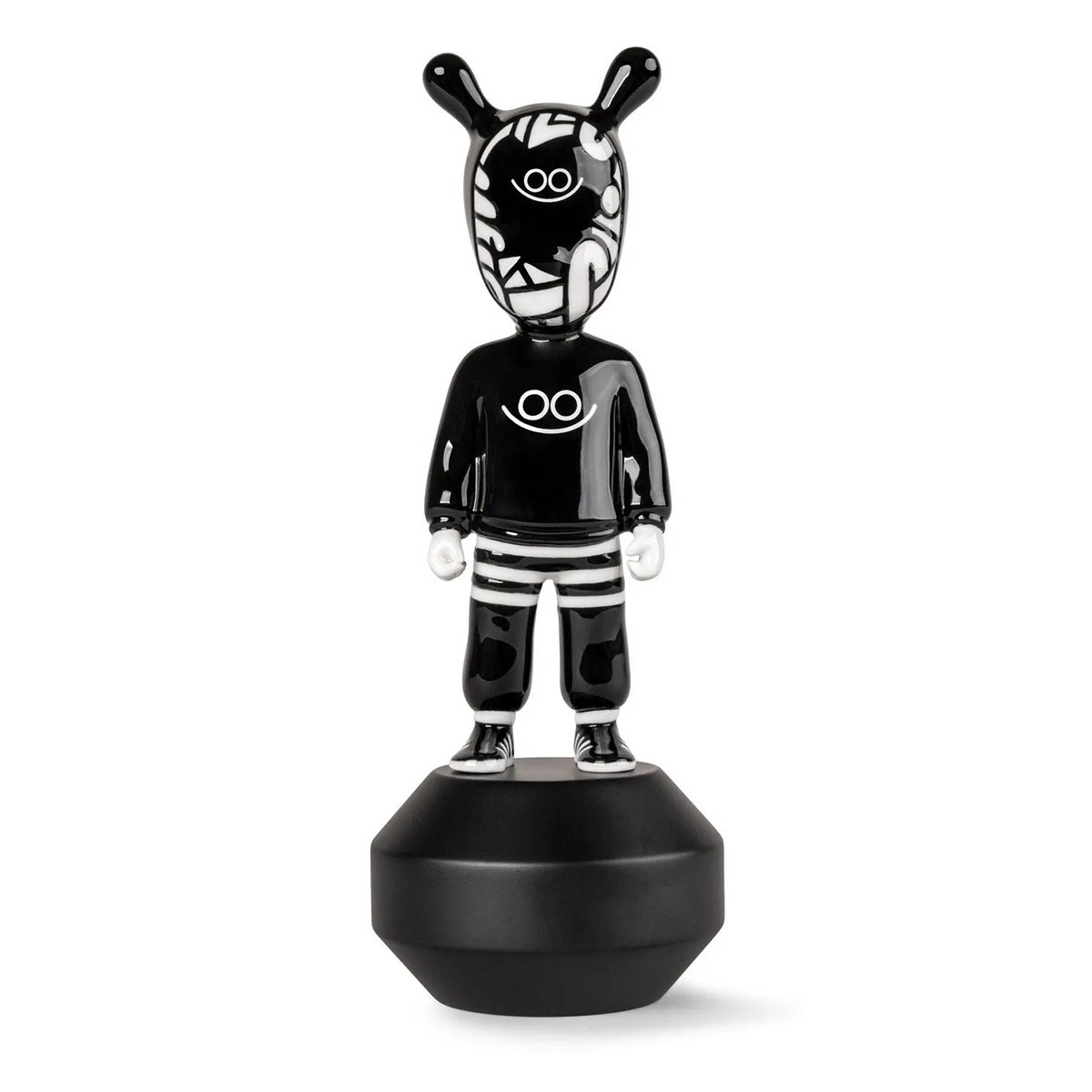 В этой версии «Гостя» Хуан Диас-Фаэс воплощает свой неповторимый стиль, создавая композицию из чистых линий и яркого визуального контраста. Изделие выполнено в черном глянцевом покрытии, которое служит фоном для фирменных белых узоров художника, создавая смелый и мгновенно узнаваемый образ.