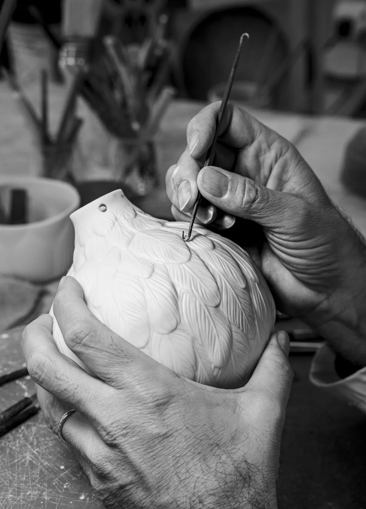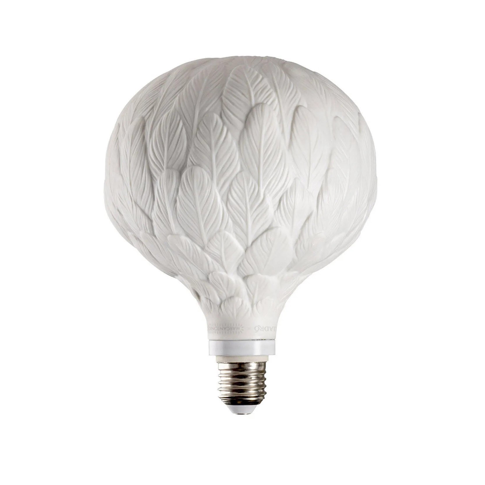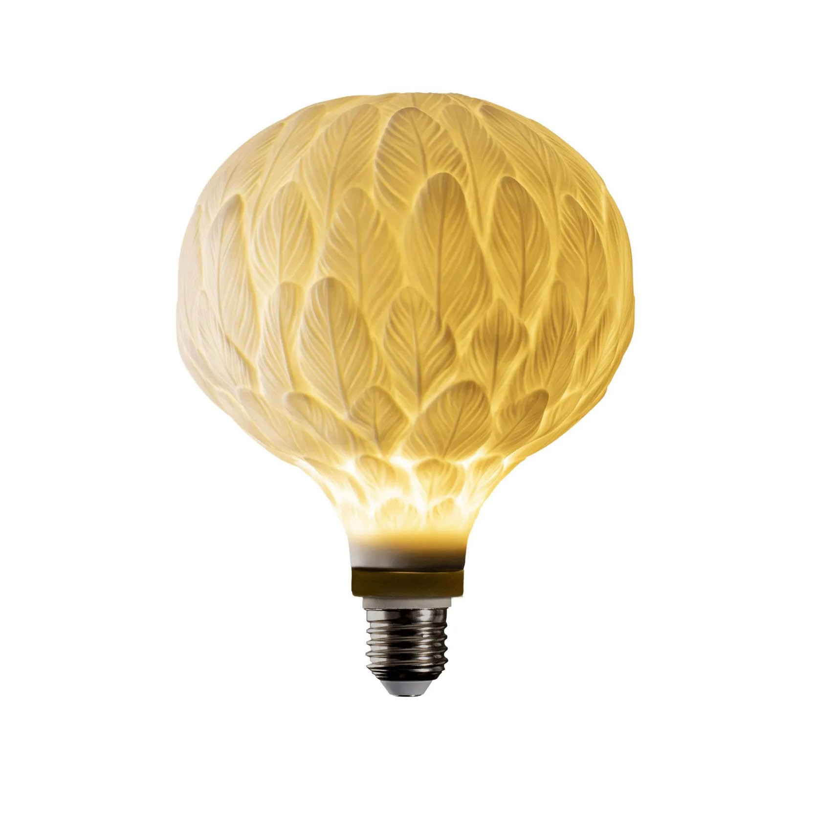 Лампа Feathers является частью A Bright Idea, инновационной коллекции, которая превращает классическую лампочку в уникальный художественный дизайн. Эта фарфоровая лампа ручной работы, созданная под присмотром итальянского дизайнера Маркантонио, известного своим индивидуальным подходом к сочетанию искусства, дизайна и природы, украшена изысканным узором из перьев. При освещении текстуры проявляются теплыми отблесками, создавая обволакивающую и волшебную атмосферу. Демонстрация того, как сделать обычное по-настоящему необычным. Этот предмет сочетает в себе тщательное мастерство, экологичность и технологичность.