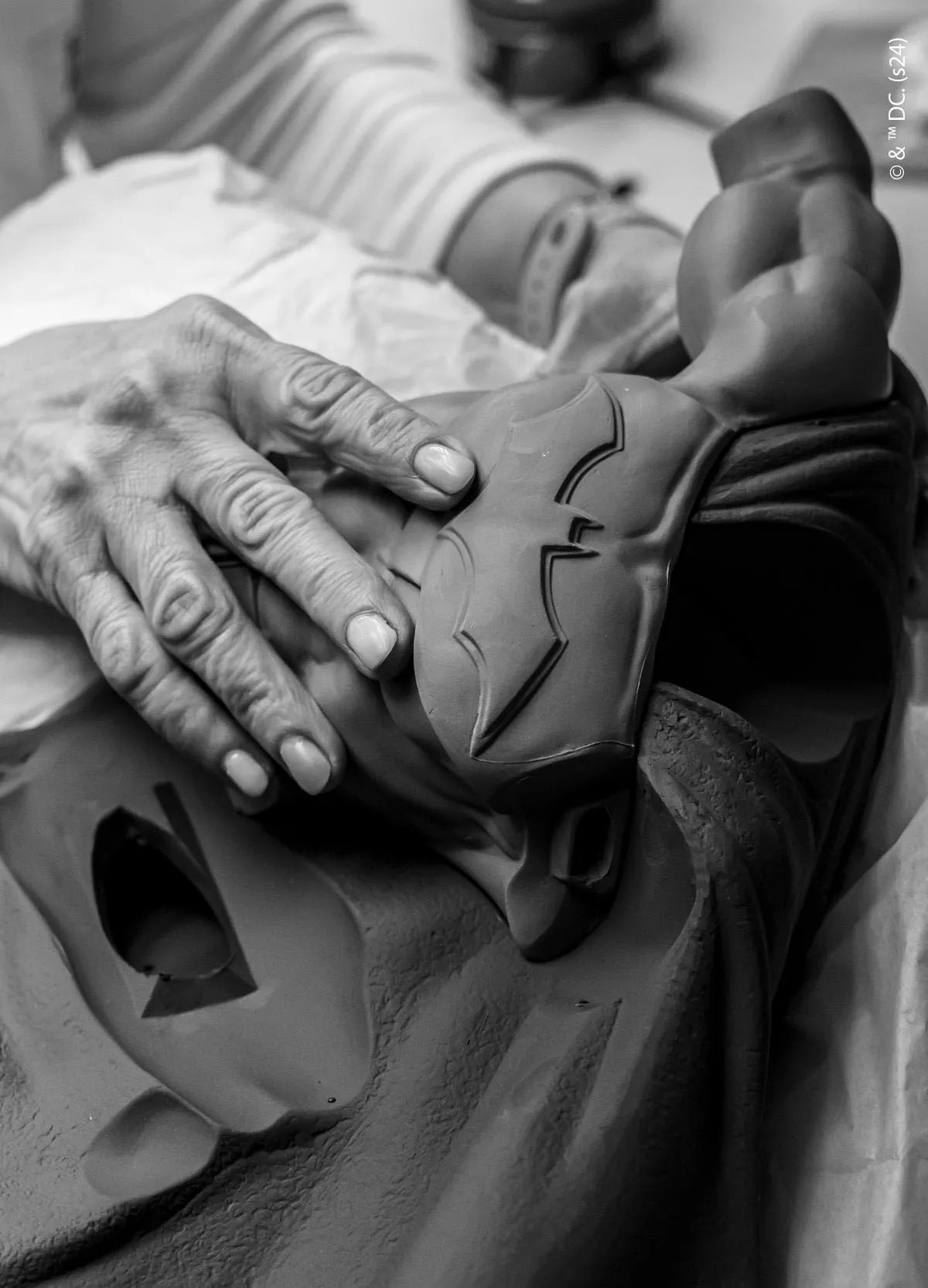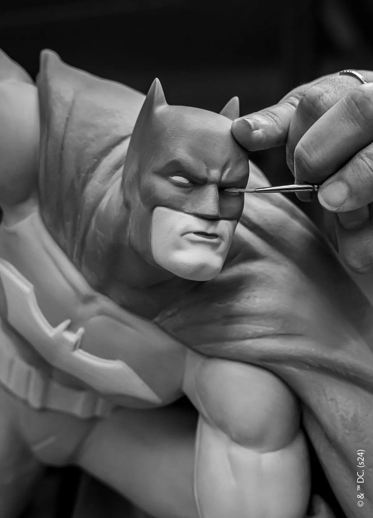 Бэтмен, наряду с Суперменом, является лучшим героем современности. От комиксов до кино, не забывая о телевидении, его приключения будоражат фантазии многих поколений поклонников по всему миру. Для создания этого динамичного и эффектного портрета был выбран матовый фарфор, чтобы передать все анатомические детали персонажа и дополнительно усилить декор, сочетающий матовые и глазурованные тона черного цвета с несколькими штрихами золотого блеска. Темный рыцарь одет в свою обычную униформу, его плащ развевается на ветру, воспроизведенный до совершенства, и он стоит на одной из знаковых горгулий Готэм-сити, готовый защищать справедливость.