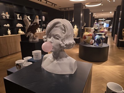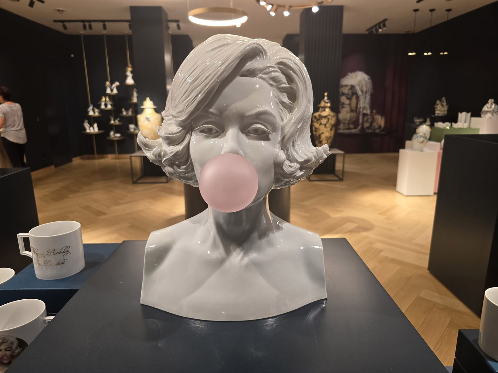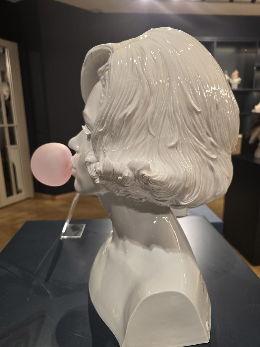 Когда Мэрилин Монро из мейсенского фарфора надувает пузырь жвачки, происходит странная вещь: фарфор перестаёт быть холодным - он становится близким, настоящим, более живым.